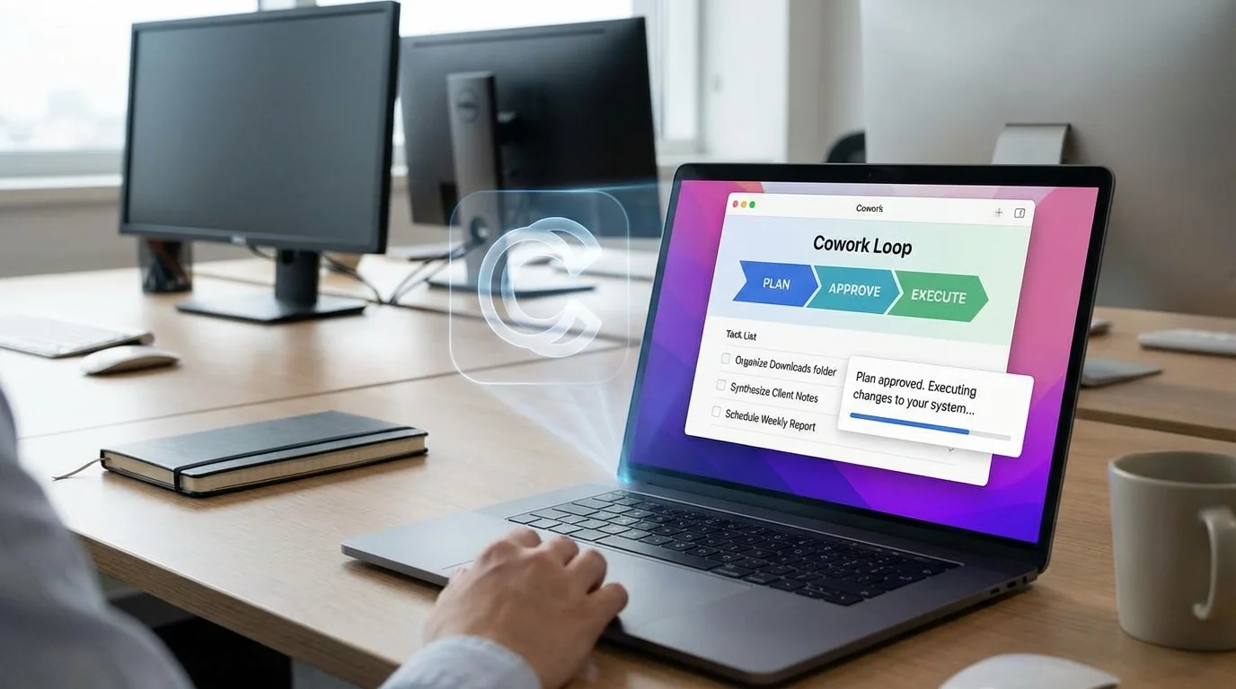 تتبع كل مهمة في وضع Cowork نمطاً منظماً: تصف النتيجة التي تريدها، يخطط نموذج Claude للخطوات، تراجع المخطط وتوافق عليه، ثم ينفذ العمل مباشرة في نظام الملفات الخاص بك. تضمن هذه الحلقة ألا يقوم الذكاء الاصطناعي بإجراء أي تغييرات غير مصرح بها على بياناتك المحلية دون موافقتك الصريحة.