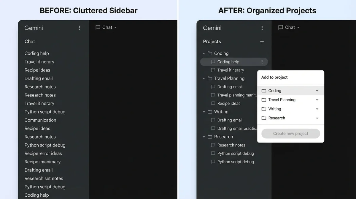 If your Google Gemini sidebar is cluttered with dozens of scattered conversations ranging from coding help to travel planning, relief is on the horizon. Google is actively testing a new Projects feature for Gemini that allows users to organize their AI chats into dedicated folders. This upcoming addition aims to solve the platform's ongoing chat management issues, bringing it closer to the organizational tools already offered by competitors like ChatGPT.