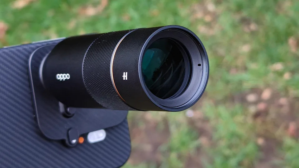 يتميز الهاتف بعدسة تقريب (Telephoto) بدقة 200 ميجابكسل، تم تطويرها بالتعاون مع شركة الكاميرات الشهيرة هاسلبلاد، مما يتيح لك تكبير الأجسام البعيدة بوضوح. وإذا لم يكن ذلك كافيًا، تبيع أوبو "مجموعة عدسات هاسلبلاد الإضافية" (Hasselblad Teleconverter Kit)، وهي عدسة تقريب حقيقية بقوة 3.28x يمكن تركيبها على غطاء خاص، لتمنحك تقريبًا بصريًا لم أشهد له مثيلاً في أي هاتف ذكي من قبل.