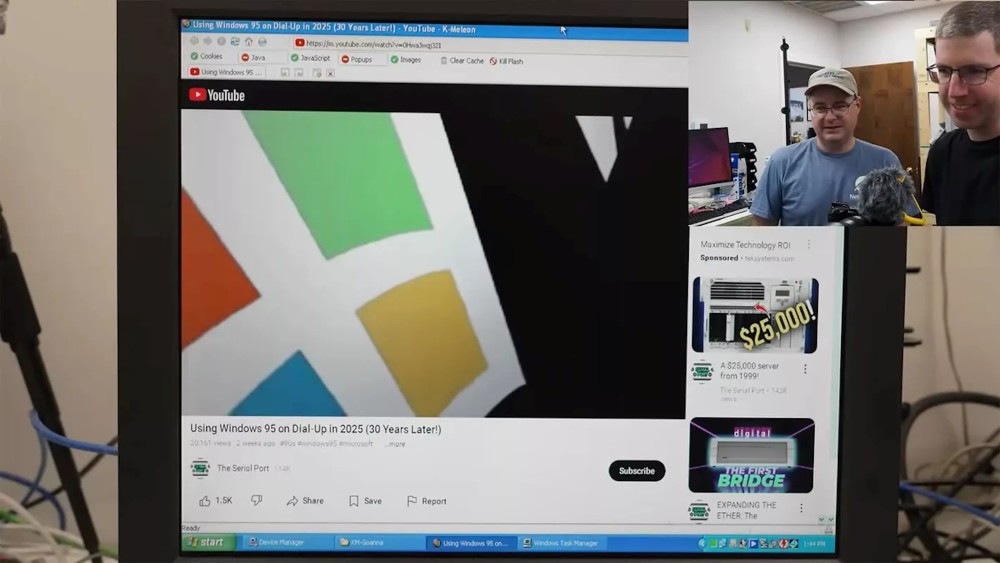 نجحت قناة يوتيوب "The Serial Port" في تحقيق أمر لم يكن يتخيله الكثيرون في عصر النطاق العريض (البرودباند): بث مقاطع يوتيوب عبر اتصال الطلب الهاتفي (Dial-up). في أحدث تجاربهم، قام الفريق بربط 12 مودم معًا باستخدام بروتوكول الربط المتعدد (Multilink PPP)، ليصلوا إلى سرعة تنزيل مجمعة بلغت 668 كيلوبت في الثانية (kbps) على جهاز كمبيوتر يعمل بنظام ويندوز XP، وهي سرعة كافية بالكاد لبث الفيديو دون تقطيع.